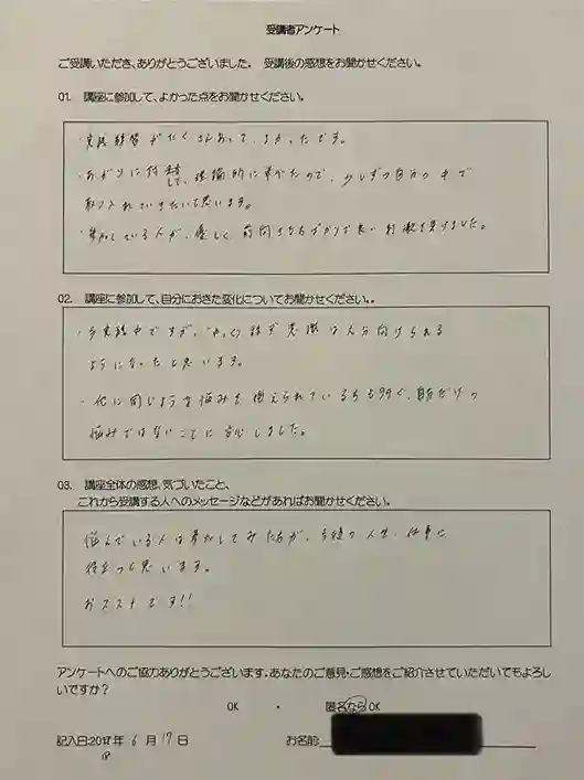 他に同じような悩みをかかえられている方も多く、自分だけの悩みではないことに安心しました。