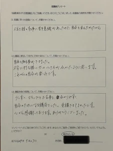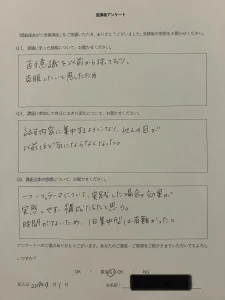 講座を引き延ばすような薄い内容ではなく、急いでいる人に、効果のある内容だけを速やかに教えるからこそ、1日だけで、あがりに対する不安が改善するのです。